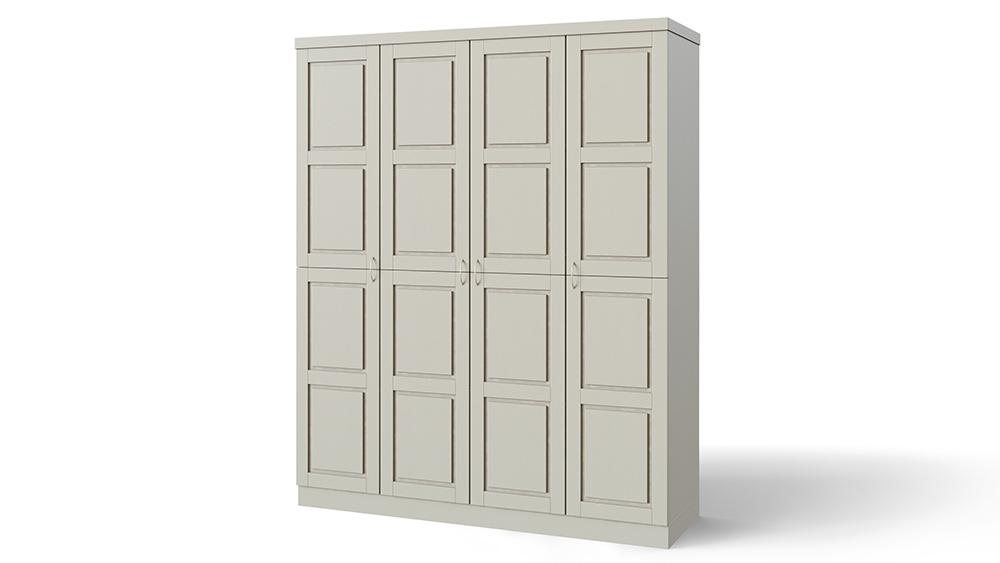 Стильный и функциональный шкаф, созданный в едином стиле с коллекцией мебели Варна — изделие без которого не возможно себе представить современный интерьер спальной комнаты. Корпус шкафа изготавливается из массива бука, ясеня или из цельноламельного щита мягколиственных пород древесины, что делает его стоимость еще более демократичной. Фасады шкафов — это единые по высоте шкафа створки филенчатой конструкции, разделенные на 4 визуально равные части, которые могут иметь встроенные зеркала как на лицевой части фасада — по размеру филенчатой части, так и на внутренней стороне фасада. Стандартно предусмотрено две комплектовки шкафа: с антресольной секцией вверху (4-3) или внизу (4-1).